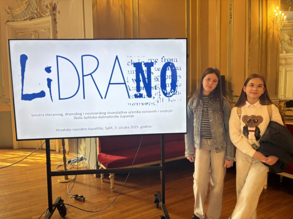 Na županijskoj smotri LiDraNo, održanoj 27. veljače 2026., sudjelovale su učenice OŠ kneza Branimira, Antonela Vulić i Paola Baturina, u pratnji mentorica, uč. Paulinke Vulić i Ivane Radovančić. Njihovi su literarni radovi prethodno odabrani na školskoj razini i međurazini te predloženi za županijsku smotru.